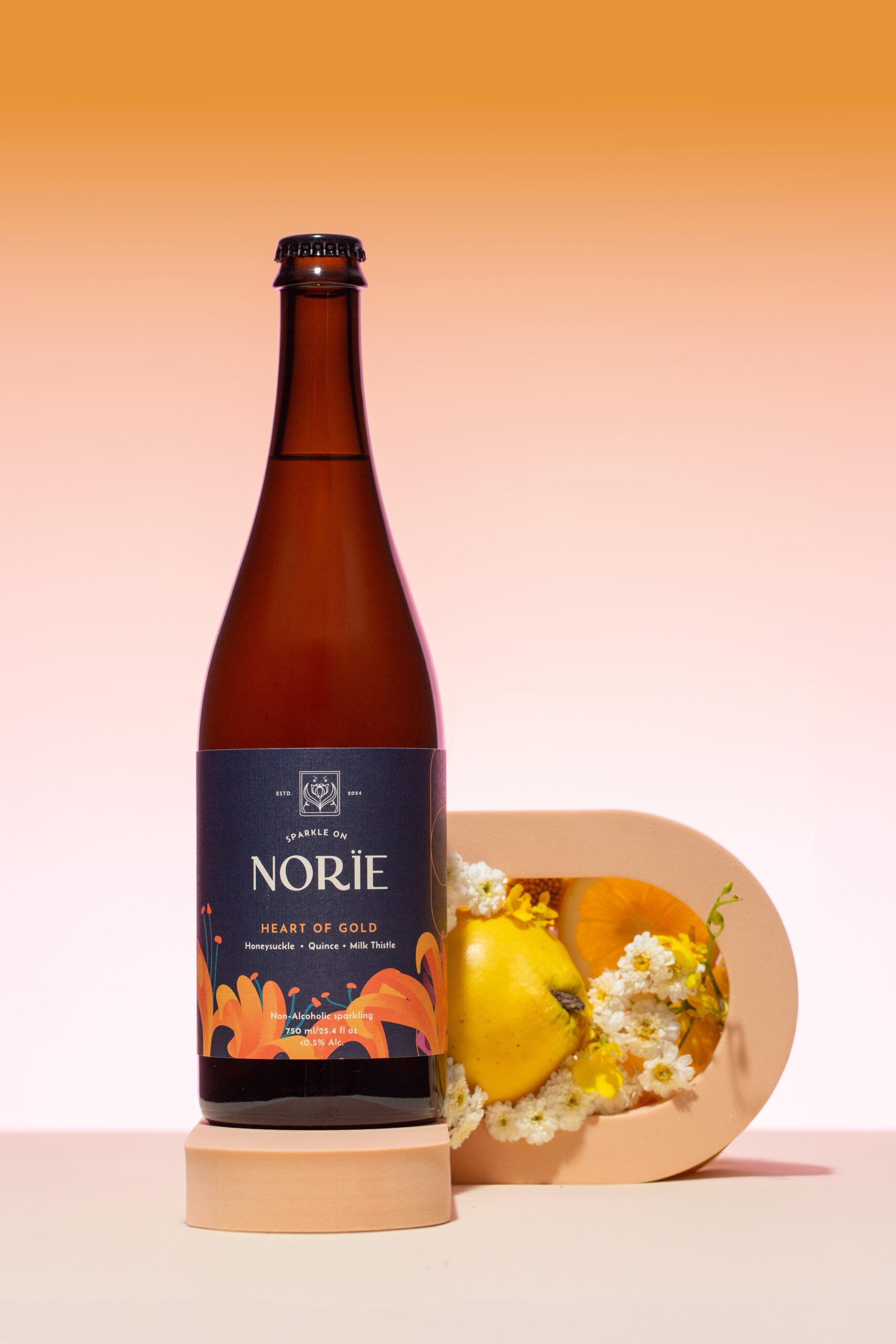 A delightfully eccentric sparkling drink with floral aromas and a tapestry of fresh, herbal, and subtly sweet flavors. This light and bright blend features fermented milk thistle, quince, honeysuckle, and balancing botanicals.